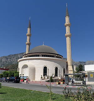 Эта мечеть — совсем новая в Кемере, всего год назад ее построили. Она находится совсем недалеко от центральной площади с башней.