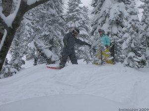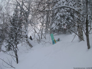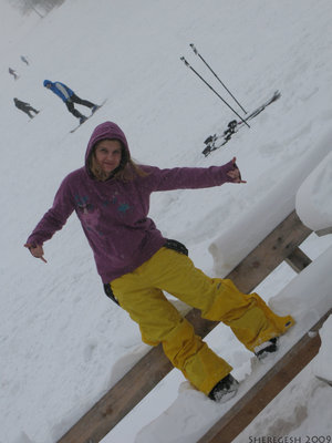 Целую неделю в ноябре 2009 года мы катались в Шерегеше. Незабываемая неделя! По колено снега, снег идет каждый день, а на склонах - огромные просторы целины!!!