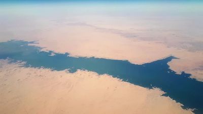 Полноводный Нил с заросшими зеленью берегами посреди огромной пустыни, вполне соответствовал нашим представлениям. Дальше, как нас учили на географии, должна быть Асуанская плотина и озеро Насера. А, вот и оно. Огромное, разлапистое, с изрезанными краями, когтистыми, как лапы дракона.