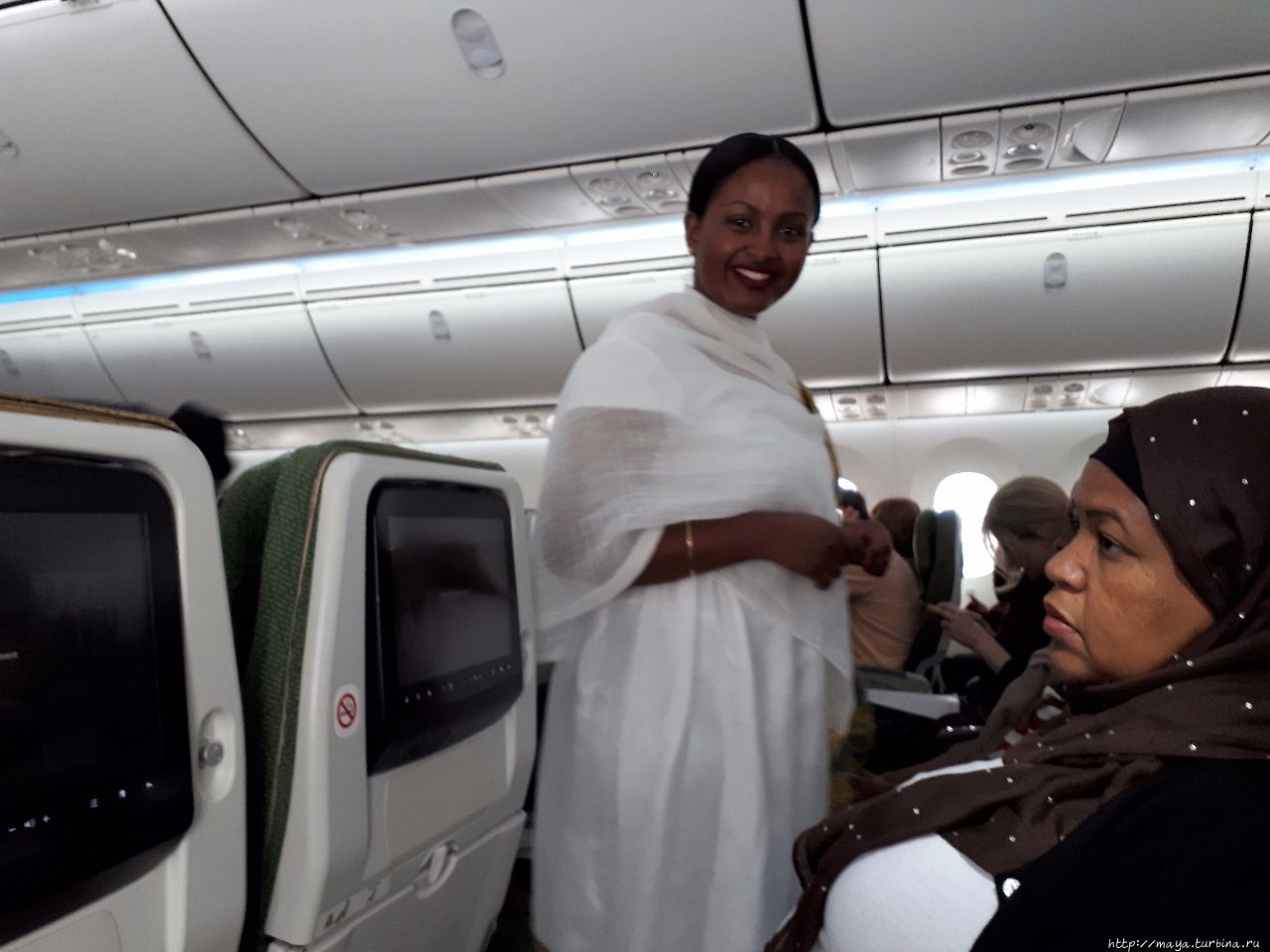 Эфиопки-стюардессы снуют взад – вперед по проходу, разнося напитки,