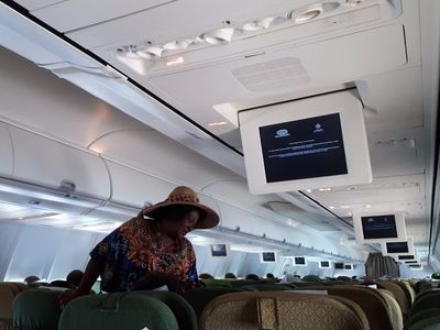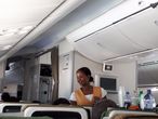 В принципе, я оказалась в Африке, как только поднялась на борт. И не только потому, что большинство пассажиров и все стюардессы были африканцами, но и потому, что над этим континентом мы оказались уже через 20 минут после взлета.Когда приземлились, пилотам не аплодировали. Но части пассажиров было скучно ожидать трапа. Поэтому некоторые начали петь, а вот эта дама еще и танцевать в ожидании возможности покинуть самолет.
