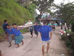 На гору Чайттийо к Золотому камню идут грузовые машины, со скамьями в кузове. Только они могут преодолеть расстояние в 16 км, где серпантин не просто серпантин, а под углом в 45 градусов.