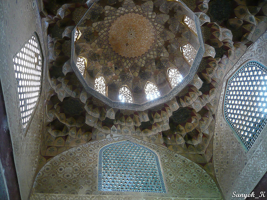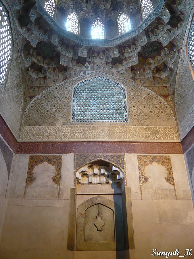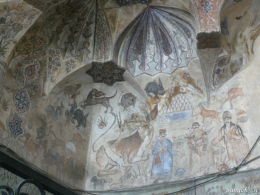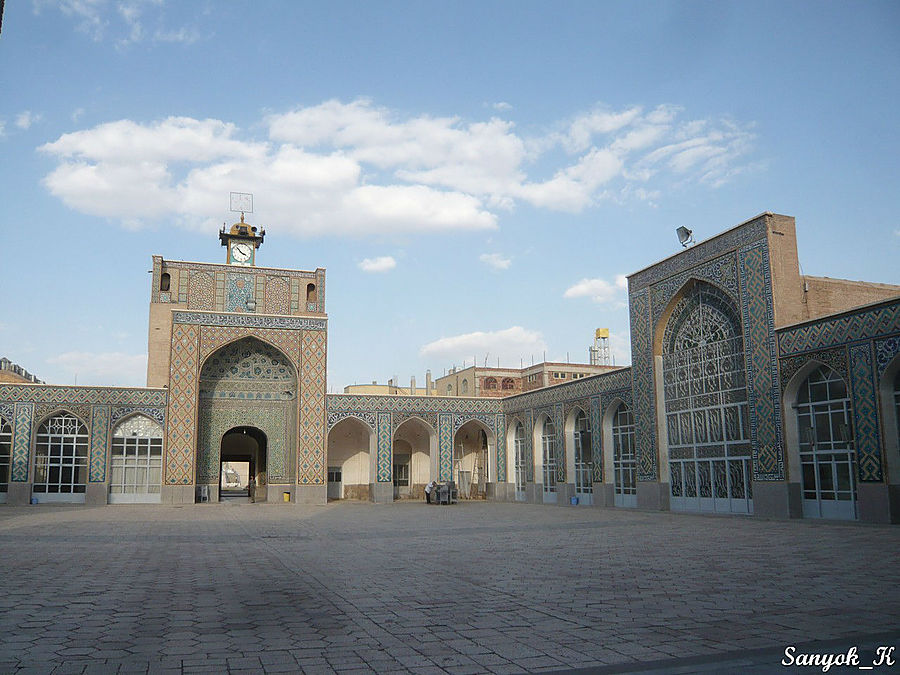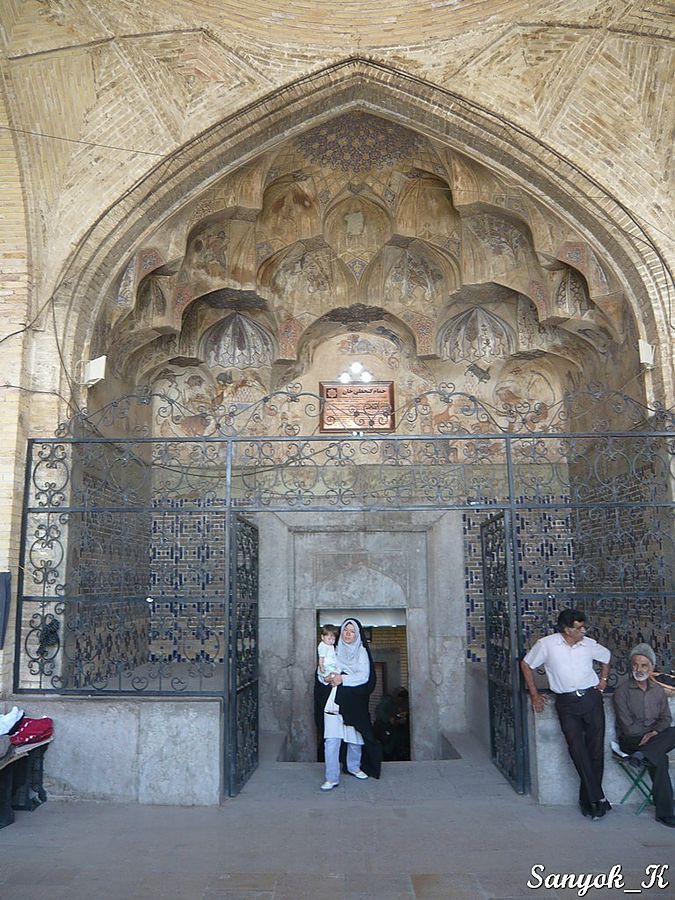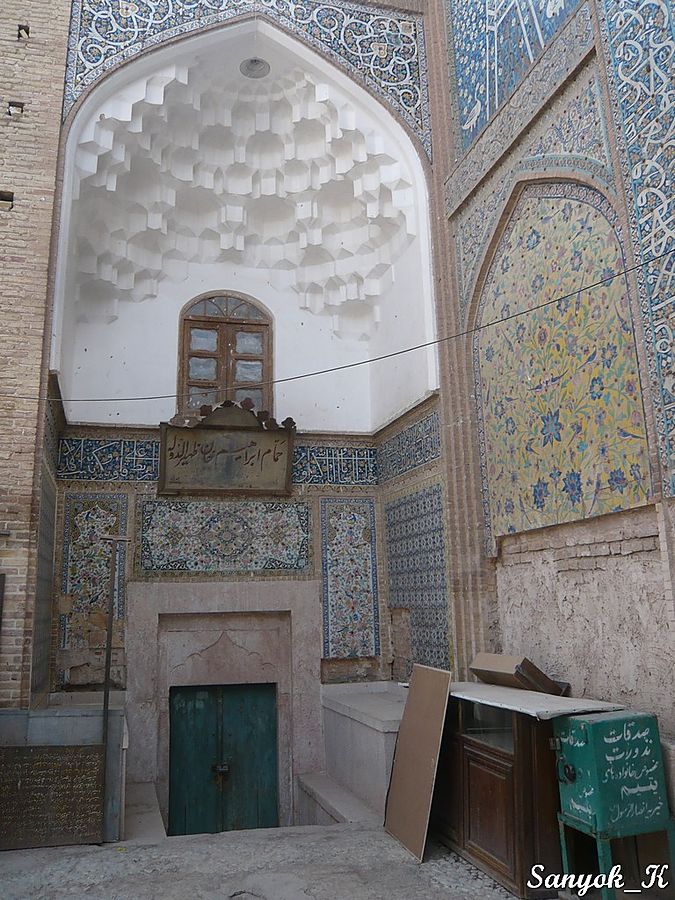 Около бани находится уютная Мечеть Гандж Али Кхана (Масджи́д э Гандж Али́ Кхан), по ступенькам у входа можно подняться на второй этаж.