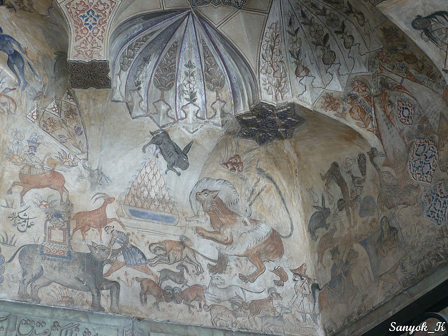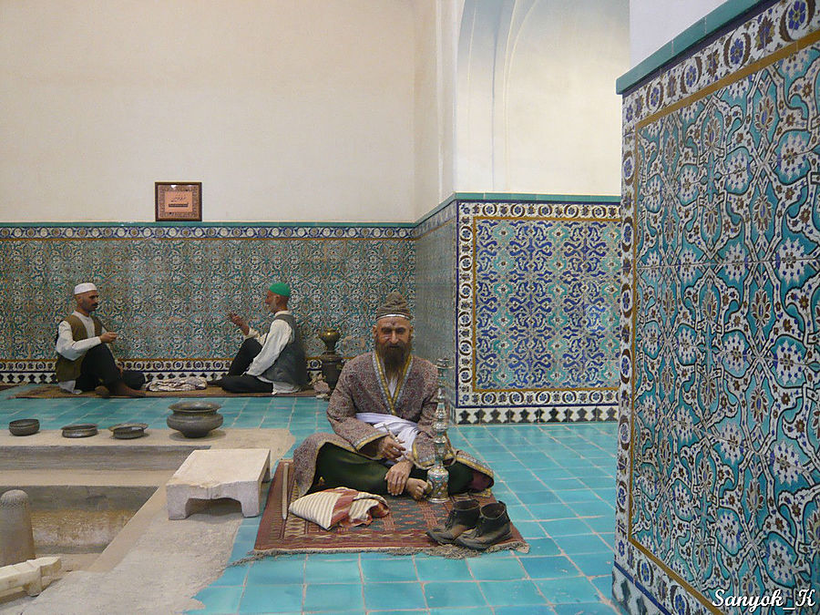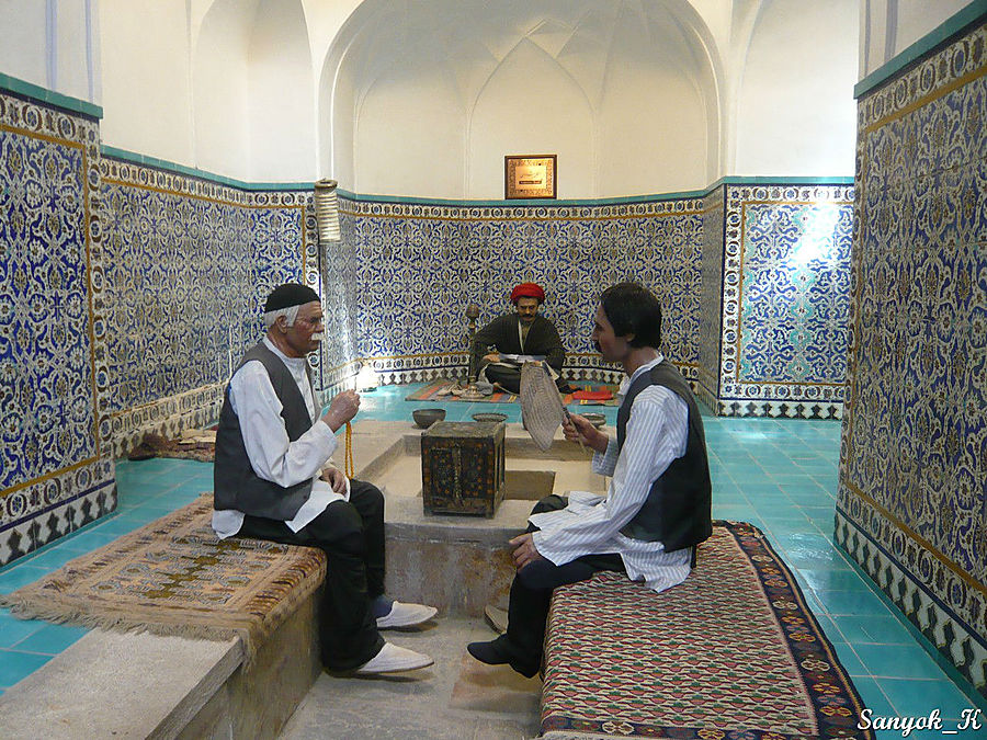 Неподалеку расположена баня «Хамма́м э Гандж Али́ Кхан», построенная в 17 в. Её вход разрисован различными сценками с животными, а интерьер изобилует мозаикой и майоликовой плиткой с узорами, в нужных местах расставлены восковые фигур, наглядно иллюстрирующих работу бани. Обратите внимание на «камни времени» — установленные на востоке и на западе. Через эти полупрозрачные камни, величиной с дверь, проникали солнечные лучи, позволяя моющимся людям приблизительно определять время.