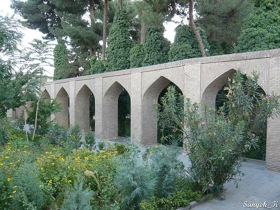 В пяти километрах от мавзолея находится сад «Багх э Шахздэ́». Своими прудами и фонтанами, гранатовыми и апельсиновыми садами, цветущими розами и высокими деревьями, в тени которых так приятно спрятаться в жаркий день, это место создавало впечатление настоящего оазиса среди пустыни.