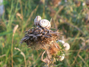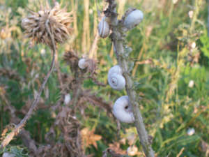 На вершине горы живут какие-то улитки, обитают на ботве