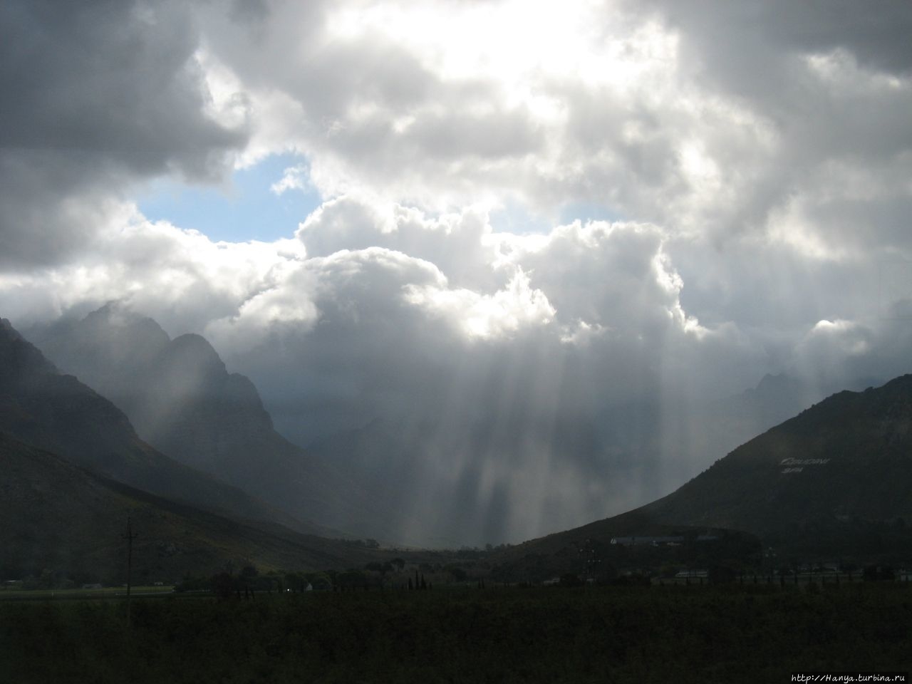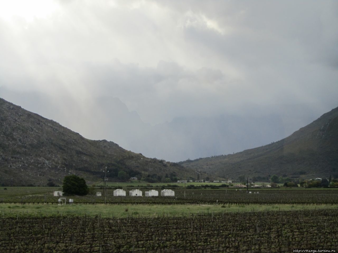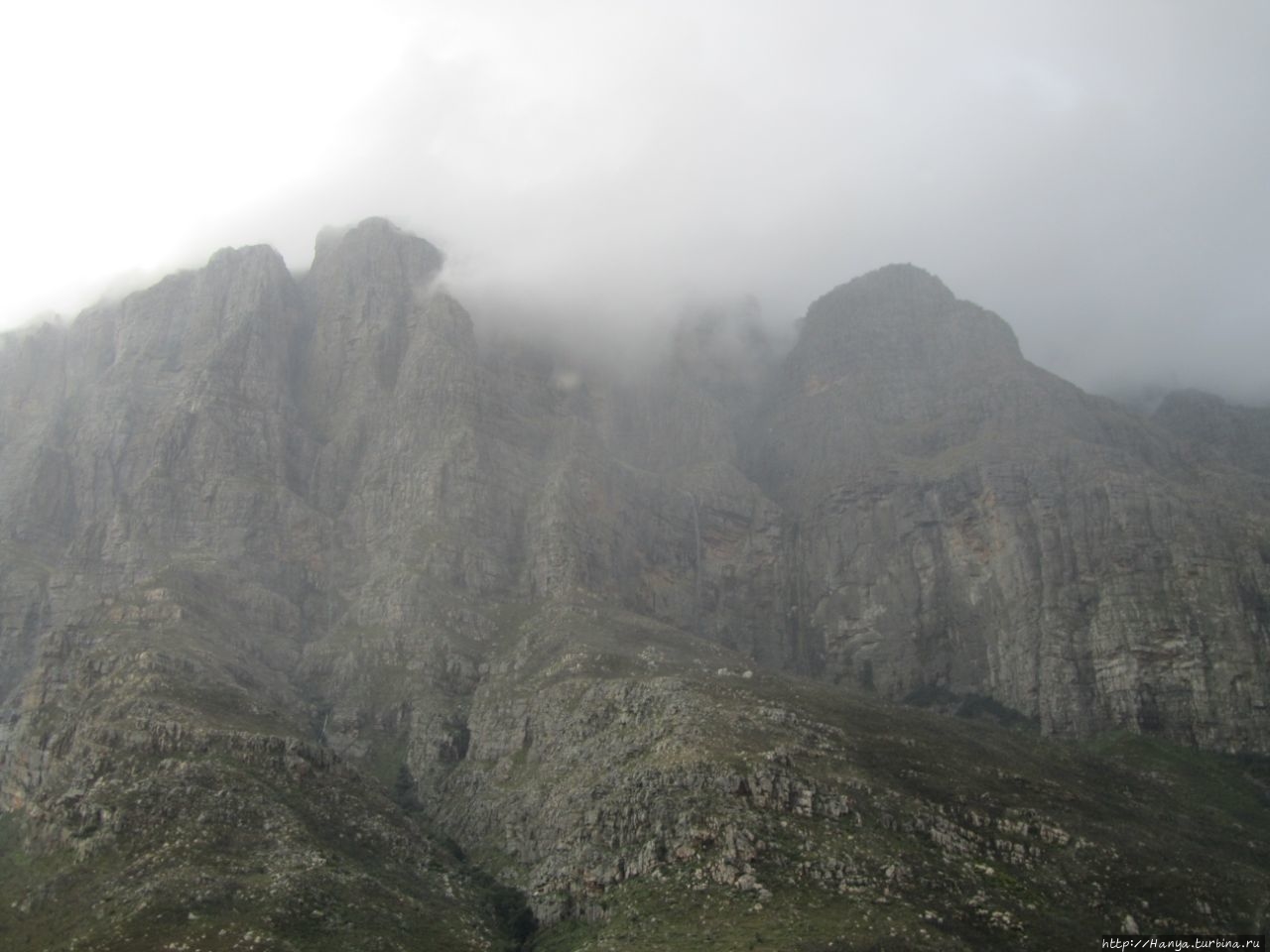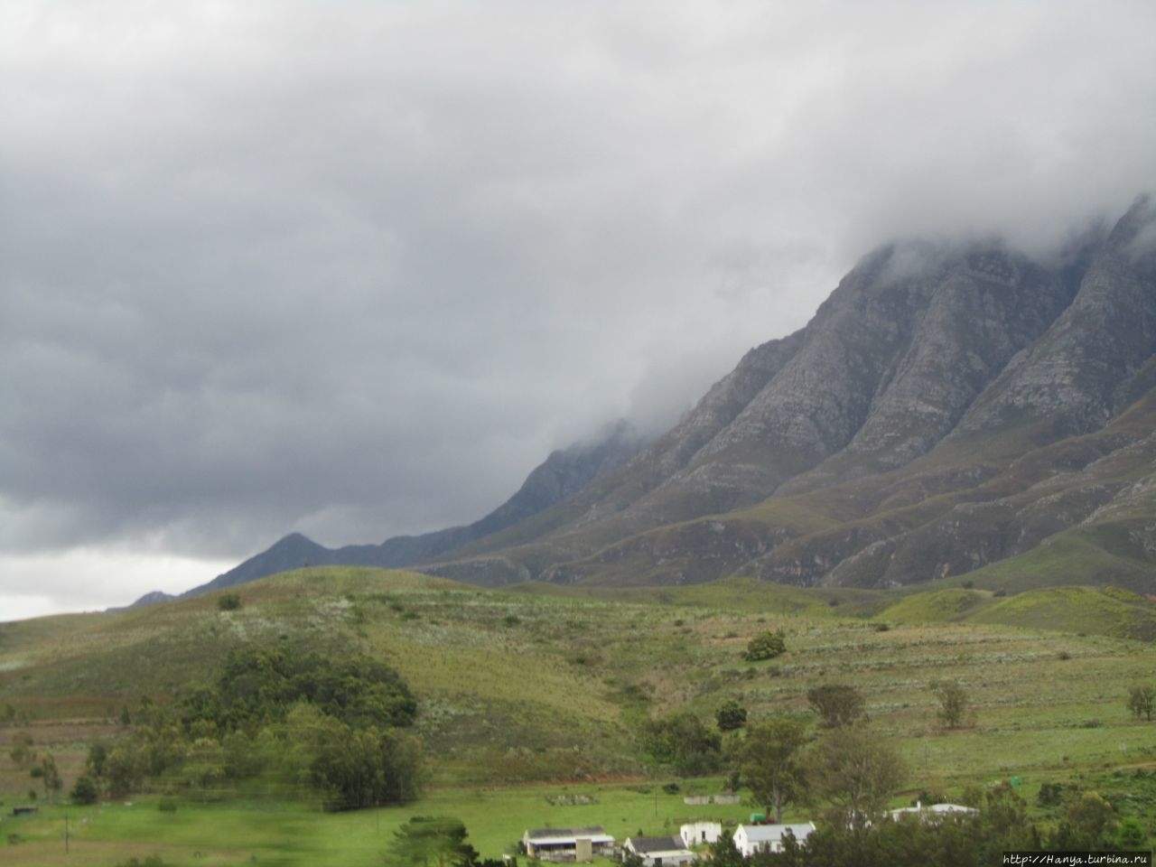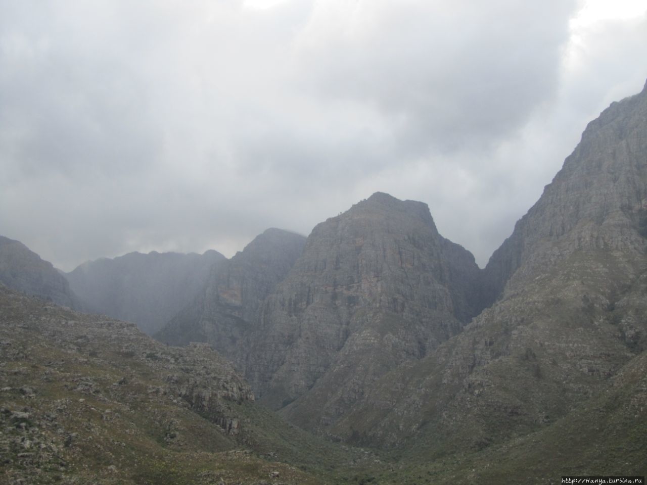 Вынырнув из тоннеля, мы как будто попали в другой климатический район, солнце, сиявшее в Ворчестере, спряталось, горы стали темными и спрятались в тумане. Мы огорчены, так как становилось под вопросом посещение знаменитой Столовой горы в Кейптауне. Сибони сказал: «Let’s get our fingers cross», чтобы тучки разошлись, дождик прекратился, и мы были счастливы!