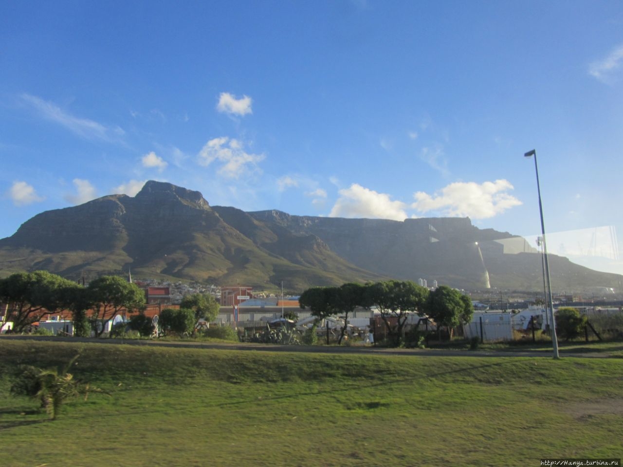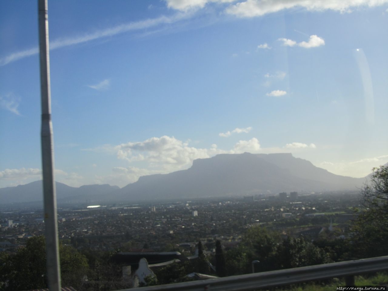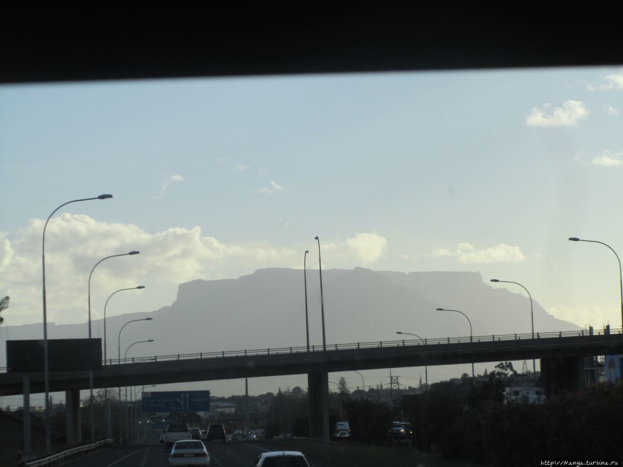 Дорога вьется среди гор, погода снова мрачнеет, и мы переживаем, как нас встретит Кейптаун. Наши молитвы были услышаны, и на небе снова появилось солнышко, и это было очень вовремя, так как впереди уже показалось новое «седьмое чудо света», выбранное и зарегистрированное в Швейцарии 07.07.2007 — Столовая гора.