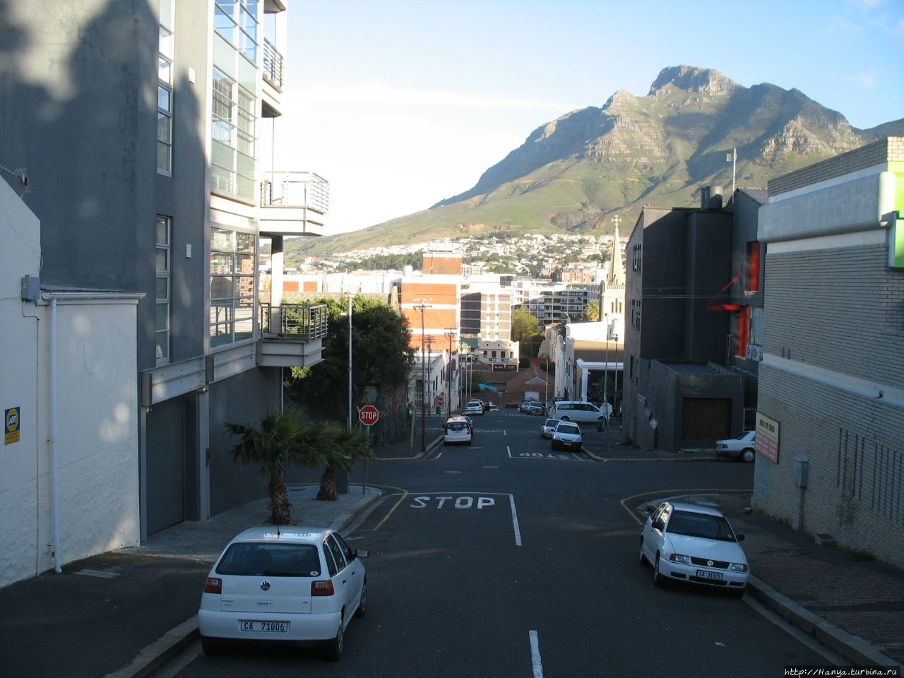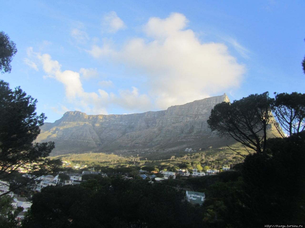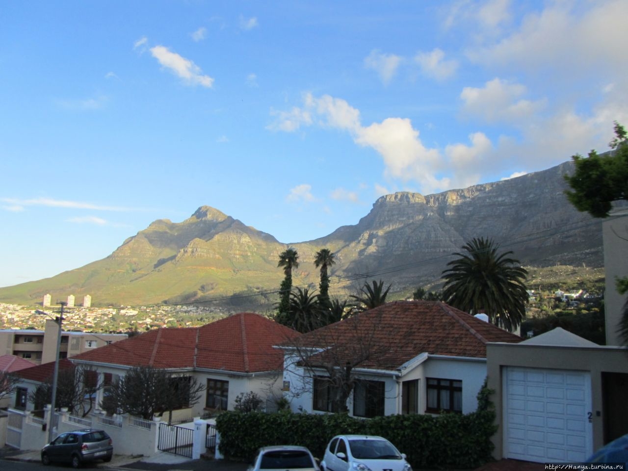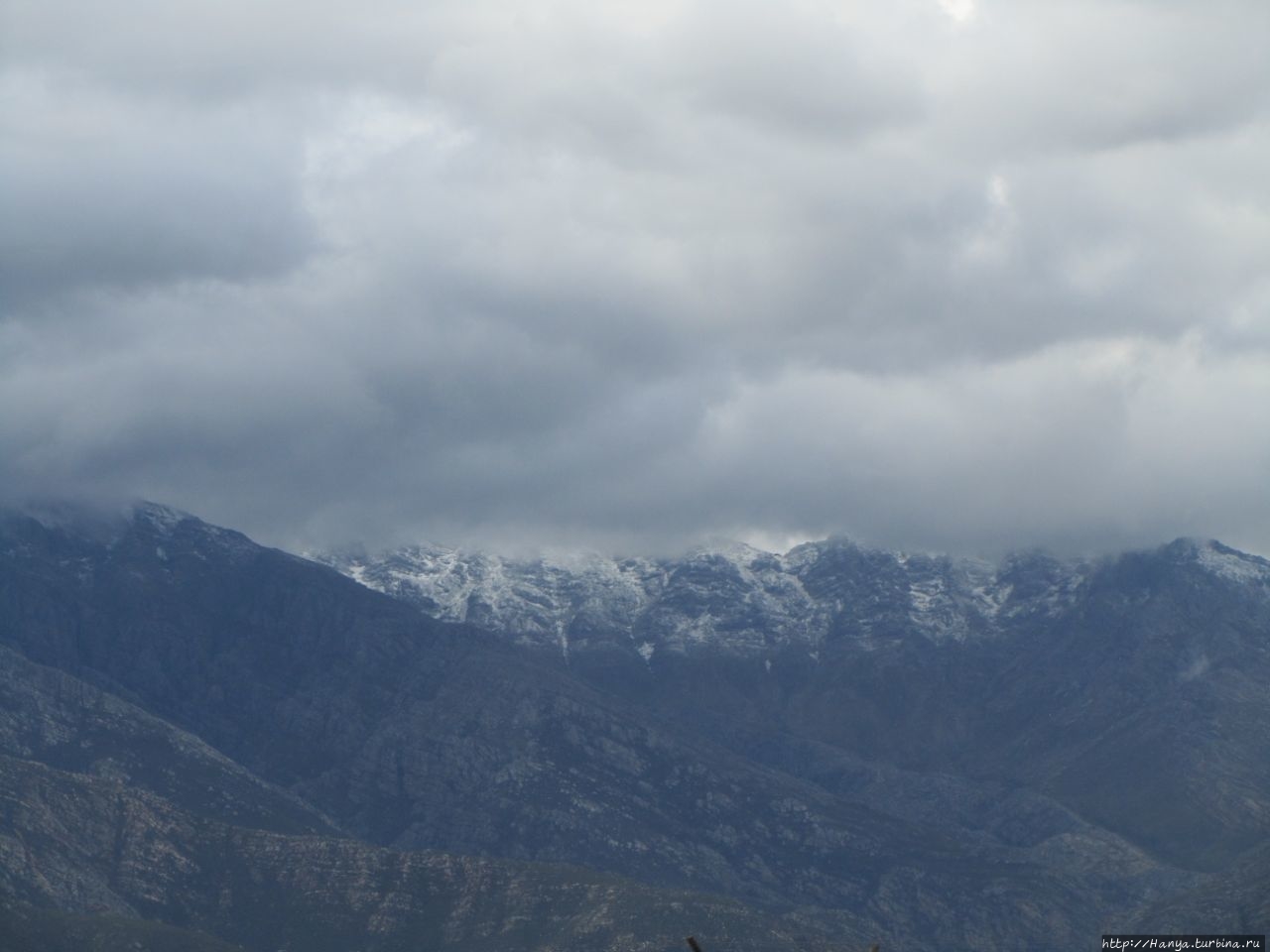 Дорога вьется среди гор, погода снова мрачнеет, и мы переживаем, как нас встретит Кейптаун. Наши молитвы были услышаны, и на небе снова появилось солнышко, и это было очень вовремя, так как впереди уже показалось новое «седьмое чудо света», выбранное и зарегистрированное в Швейцарии 07.07.2007 — Столовая гора.