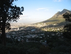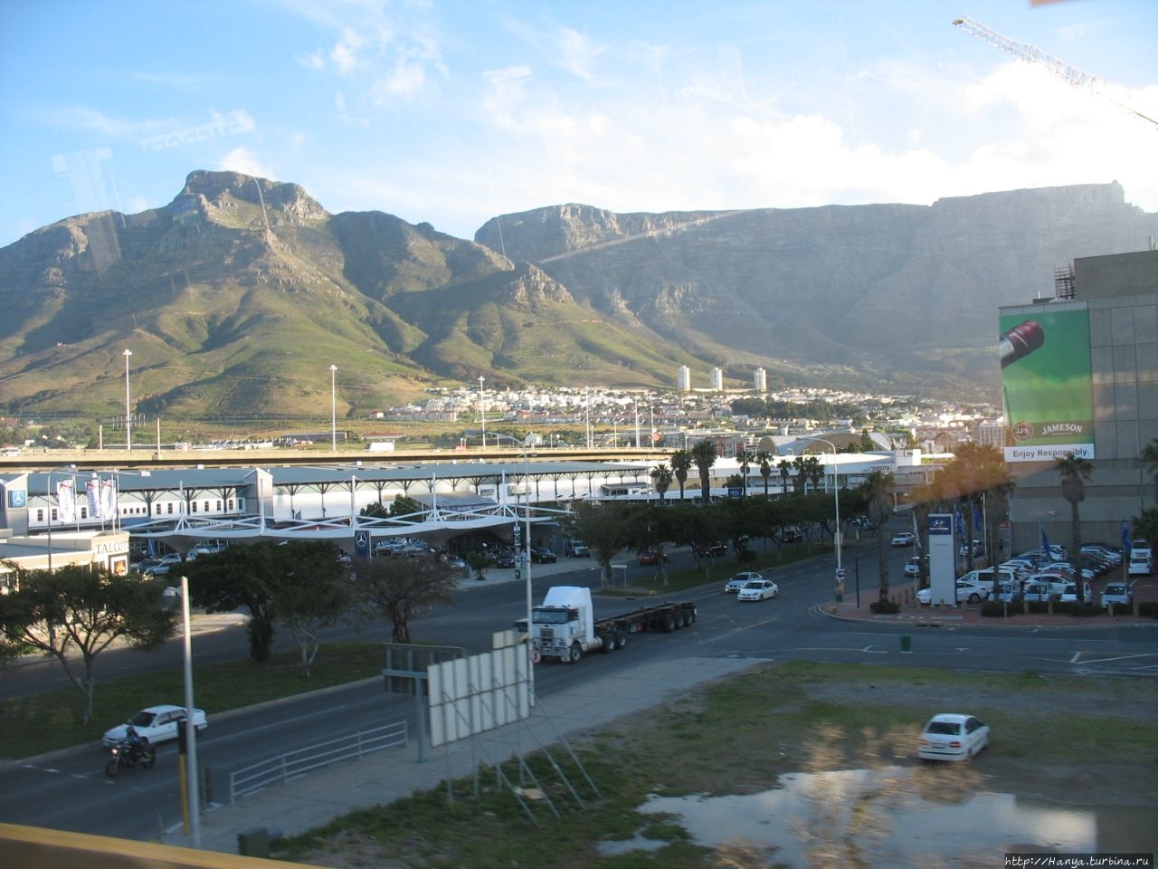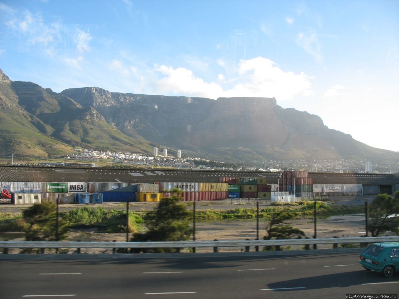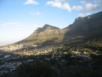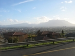 Дорога вьется среди гор, погода снова мрачнеет, и мы переживаем, как нас встретит Кейптаун. Наши молитвы были услышаны, и на небе снова появилось солнышко, и это было очень вовремя, так как впереди уже показалось новое «седьмое чудо света», выбранное и зарегистрированное в Швейцарии 07.07.2007 — Столовая гора.