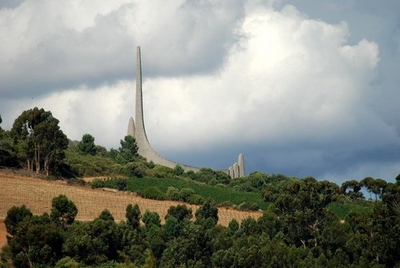 Из-за тумана и мороси с трудом идентифицируем самый большой монумент в ЮАР — Памятник Языку (Afrikaans Language Monument), увековечивший один из официальных языков ЮАР – африкаанс.