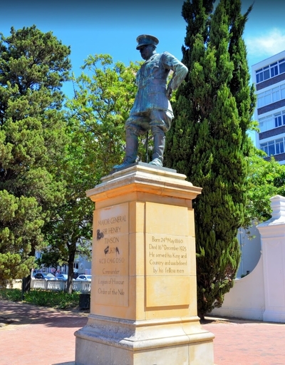 Наконец, мы вырываемся на крестообразный простор, центр которого украшен ротондой, увенчанной конной статуей. Но прежде чем изучить это сооружение, сворачиваем направо и подходим к статуе, посвященной Major General Sir Henry Timson Lukin. Этот генерал-майор сэр Генри Тимсон Лукин был южноафриканским полководцем, который участвовал в 5 войнах и боевых кампаниях. Статуя выполнена южноафриканским художником Антоном ван Воу и установлена в 1932 году. Ван Воу был художником голландского происхождения и считается отцом южноафриканской скульптуры.