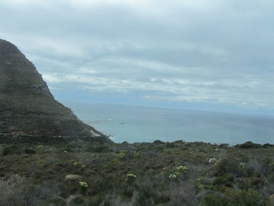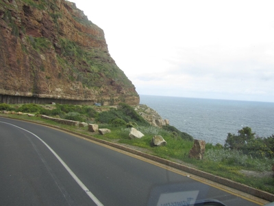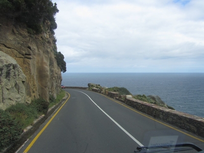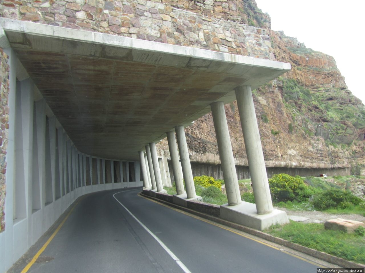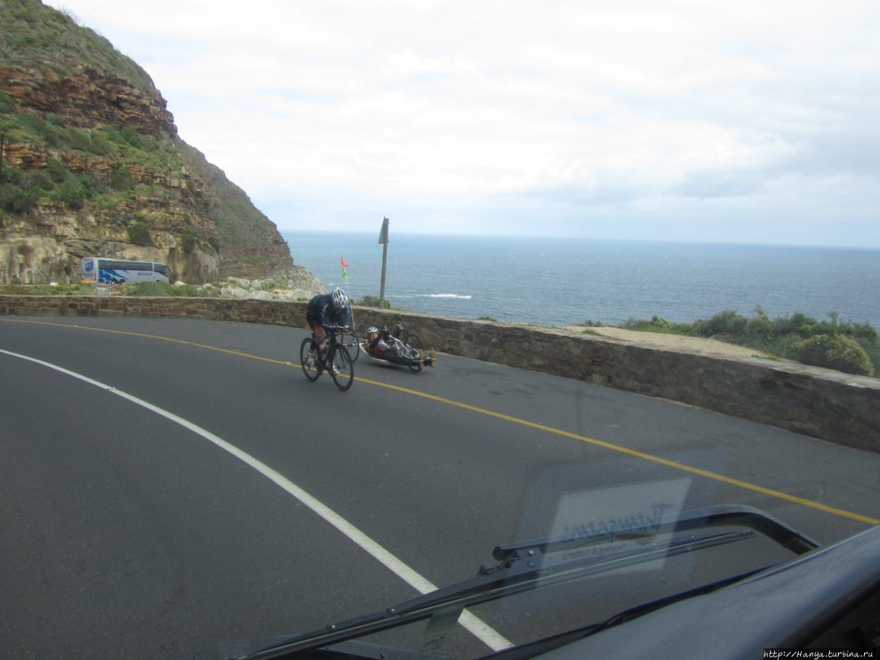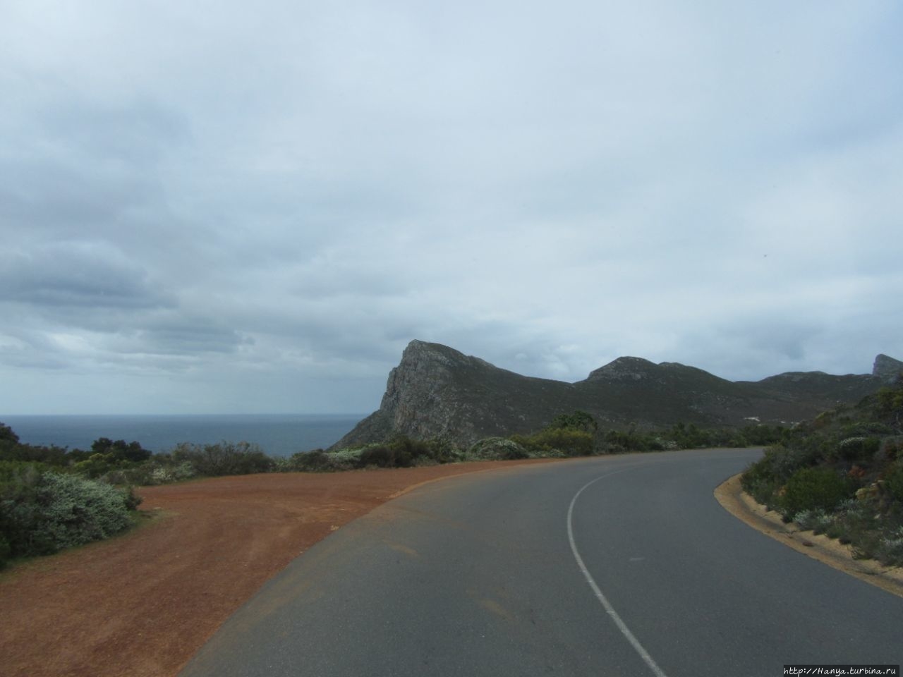 Капский полуостров:Seal Island Cruise к морским котикам. Ч79) поднимаемся вверх в гору и далее по горной панорамной, петляющей трассе, едем вдоль океана, по краю скалы. Это Чэпменс Пик Драйв (Chapman’s Peak Drive), на одном из поворотов водитель притормаживает, а гид дает возможность полюбоваться красотами местности и видом океана. .