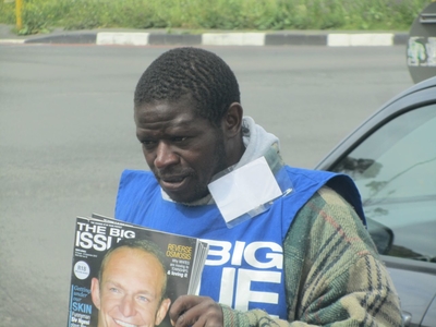 На остановках успеваем запечатлеть распространителя журналов и милых собачек в машине.