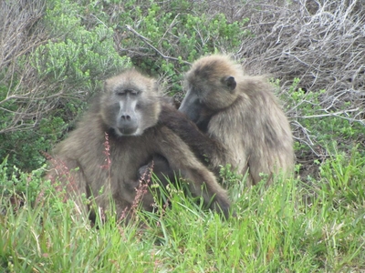 Действительно, увиденные нами из окон, бабуины обладают бандитскими физиями, и мы переключаем свой взгляд на пасущихся здесь же страусов.