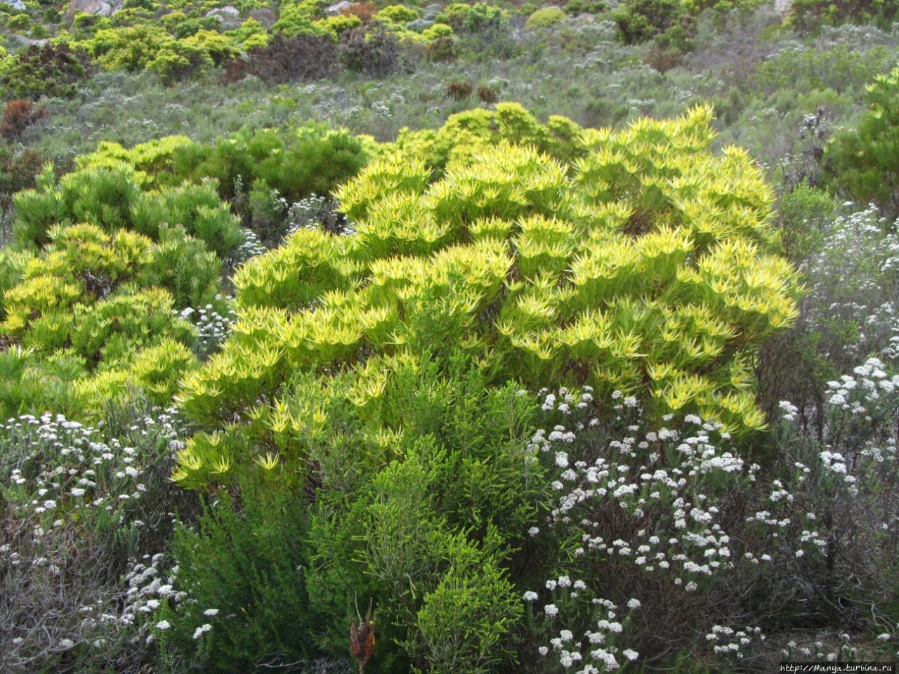 Судя по информации, здесь флора настолько разнообразна и уникальна, что она заслуживает классификации как один из шести основных флористических регионов мира. Как на мой взгляд (во всяком случае, исходя из увиденного), здесь преобладает кустарниковая растительность, именуемая финбош, и мне даже как-то странно узнать, что этот район является одним из «самых богатых растительных районов» в мире. Зато Флористический регион дает ученым прекрасную возможность изучения отдельных видов, их сохранения, распространения и эволюции. Он составляет менее 0,5% площади Африки, но является домом для почти 20% флоры континента, а 32% видов растений вообще больше нигде не встречается в мире! Вот так-то!