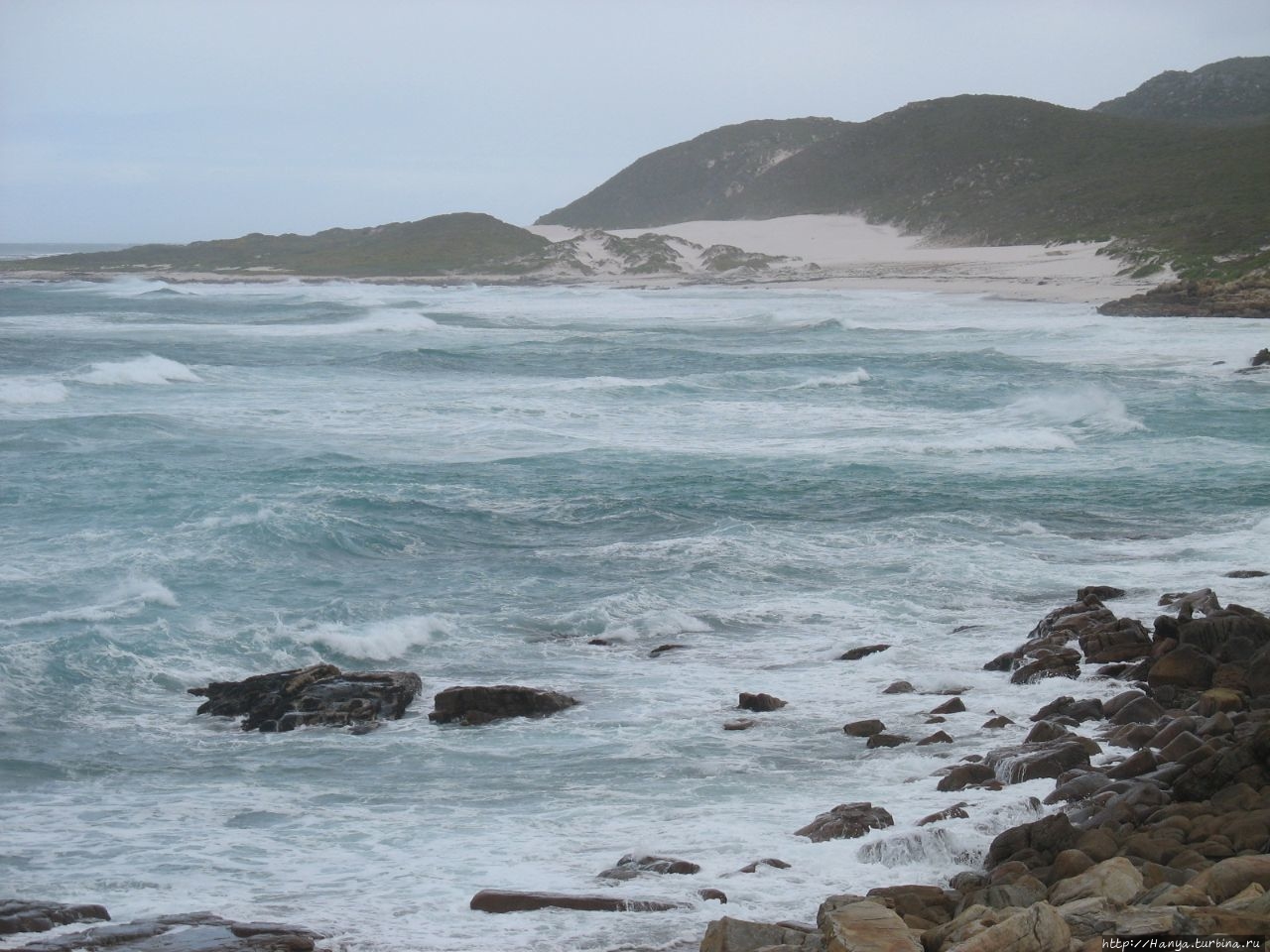 Отсюда у нас начинается возвращение в Кейптаун, и едем мы по восточной части полуострова, вдоль побережья бухты Фэлс Бэй (False Bay). Название, данное этой бухте, носит имя Ложная, и это оттого, что штурманы кораблей часто путали ее со Столовой бухтой, в которой находится Кейптаун. Здешние пляжи пользуются повышенным вниманием из-за того, что вода на этом берегу Капского полуострова всегда теплее из-за вод Индийского океана. И еще, именно в этой Ложной бухте родилась легенда о корабле-призраке «Летучем голландце».