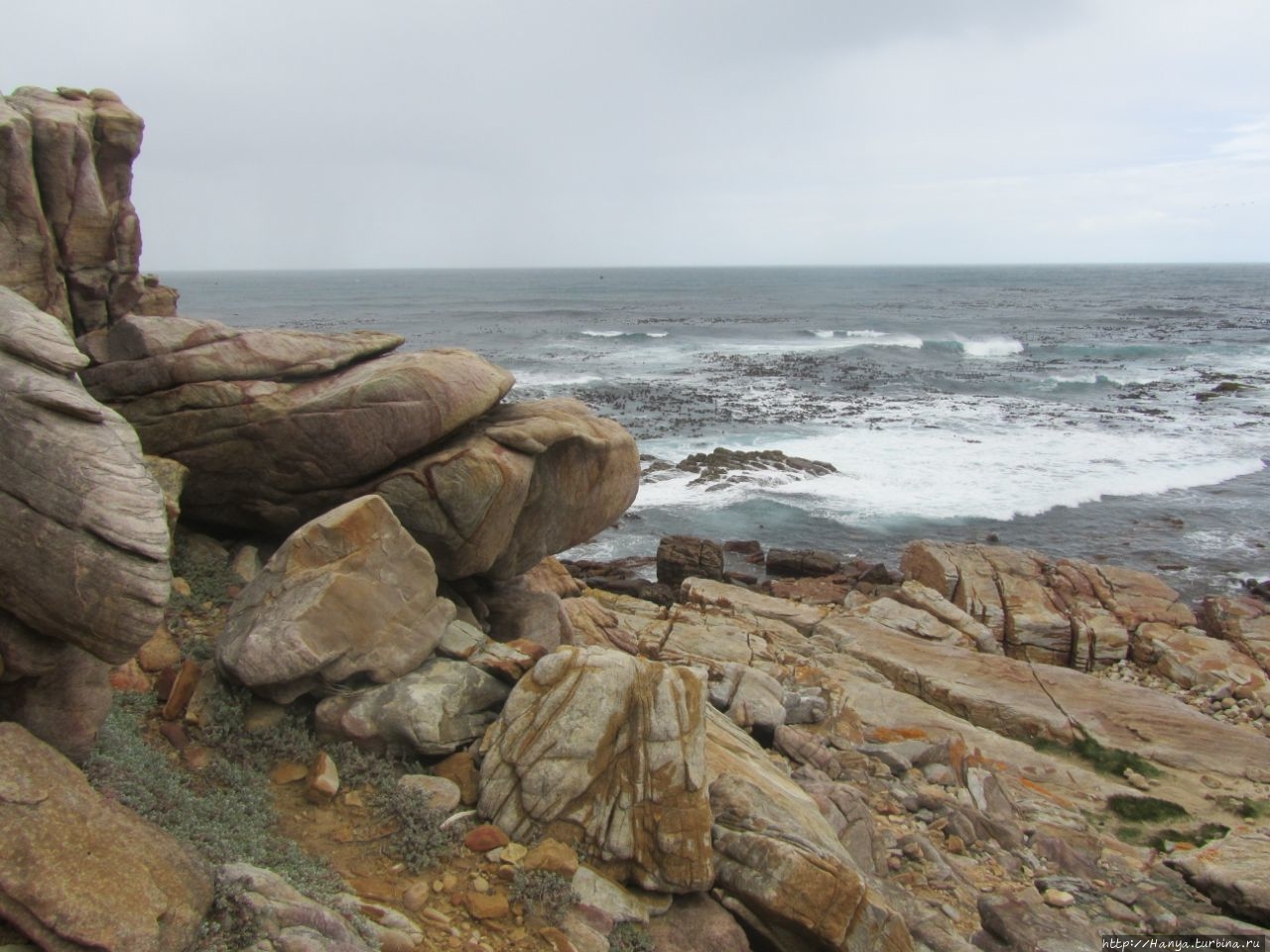 Тур по Капскому полуострову: Цветочное королевство. Ч. 80), о значимости которой я уже писала.Дорога идет вдоль берега Атлантического океана, и наконец, приводит нас на стоянку, где уже имеется несколько туристических автобусов.