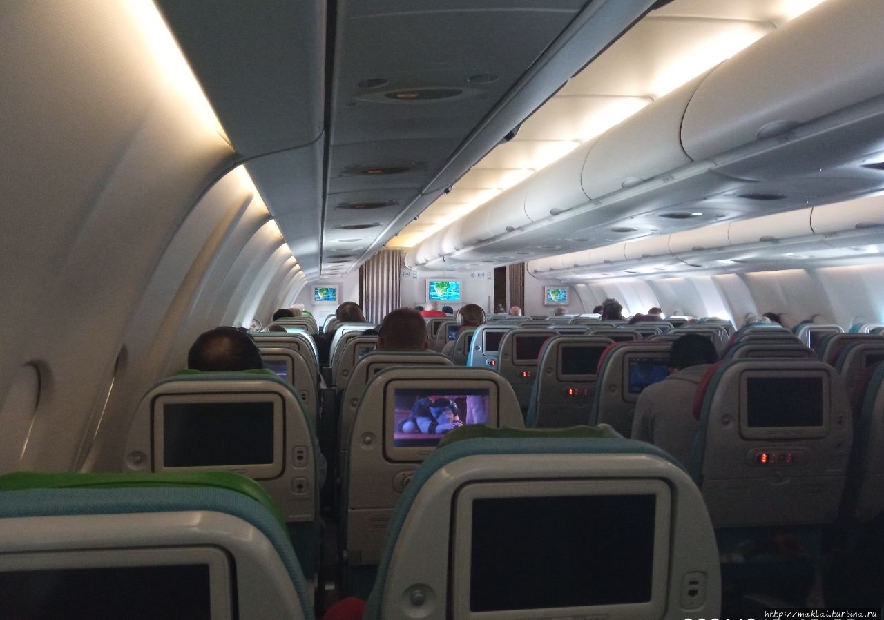 Когда представители белой расы уселись в огромный А-330, оказалось, что самолёт скорее пуст, чем заполнен. В общем, если пятая часть пассажирских мест в самолёте была занята, то хорошо.