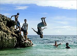 За изгородью виднелись головы филиппинцев разного возраста, сбежавшихся на невиданное доселе зрелище, как стая чаек слетается к косяку рыбы. Их изумленные взгляды были устремлены в сторону наших ничего не подозревавших русалок и аполлонов. Так вот в чем дело… Вот вам и безлюдный пляж...