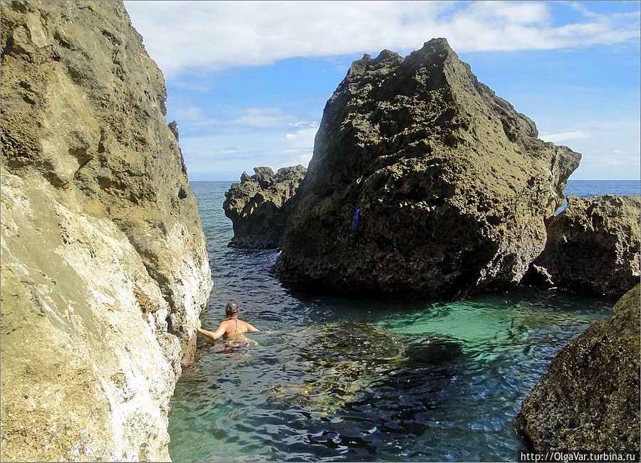 Обогнув одну группу скал, я вышла к другой, следовавшей за первой, прямо к небольшой лагуне с прозрачной бирюзовой водой.