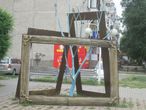 Абакан для любителей высокого искусства так себе город.Есть национальный музей и выставочный зал Чатлыс в центре на видном месте. Я заметил его еще в первое утро в городе, когда шел от вокзала до вписки, вскоре посетил в компании, нас было четверо, поэтому пустили за 50 рублей с носа. Ну если сравнить с ценами в музеях Красноярска, то даже это дороговато, по сути один небольшой этаж внутри и ларек с сувенирами.