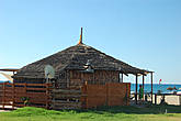 На пляже стояла хижина, возле которой лежали лежаки, которые необходимо самим было тащить под зонтики. Сбоку от хижины находились место, где можно было смыть морскую соль и переодеться, и туалеты.