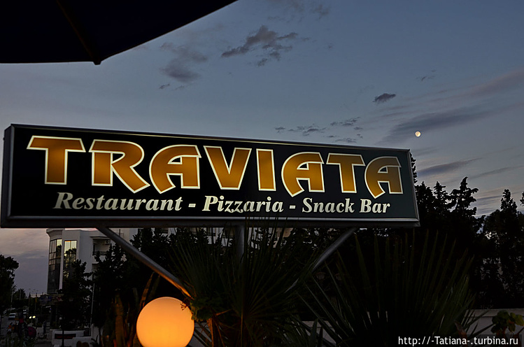 Сейчас мы еще вполне успеем съездить в Ясмин, побродить там, и даже на яхты посмотрим. И каждый год жасмин парит в минувшем и грядущем лете Но вот ужинать поедем к себе. Недалеко от отеля есть очень нормальный ресторанчик Травиата.