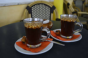 И ещё немного о кафе и официантах. Я в первый же день у отельного гида спросила, как называется чай с орешками, что бы в кафе его заказать. Он мне сказал. Я записала. Приходим в кафе. Я по бумажке произношу эту абру-кадабру. На меня, замерев, смотрят. Переспрашивают на французском. Ну понятно, что бесполезно. Я когда французскую речь слышу, вообще впадаю в состояние транса – очень красивый язык, мне всё-равно что вы говорите, но продолжайте говорить. Поэтому вызвали подмогу с английским. Вывели меня из состояния транса. Потом еще кого-то зачем-то позвали… Вавилонское столпотворение получилось какое-то. Минут через 15 мы сломались и сказали «что принесёте, то и съедим/выпьем, нам уже всё равно». На русском, конечно, сказали и руками так взмахнули обреченно в сторону кухни. И принесли-таки чай с орешками!