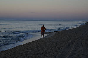 Простое отпускное счастье — это... правильно — поспать подольше. Восход — это вполне себе подольше. Если мне удавалось спать до восхода, то только потому, что в России был выходной. Когда в России были будни, то… 6 утра в Тунисе — это 9 утра на Родине. В Тунисе рассвет. Счастье вибрирует под подушкой смс-кой "Вставаааай! Пора фотографировать! Восход проспишь!" И так каждый день. На десятый день всё-таки не проспала! Мои акробатические этюды «без штатива», «со штативом» и «а может так тоже получится» развлекли бегуна француза, он улыбчиво побонжурился со мной и побежал дальше. Второй бегун снисходительно покосился и оббежал меня подальше, почему-то… Вот делюсь результатом.