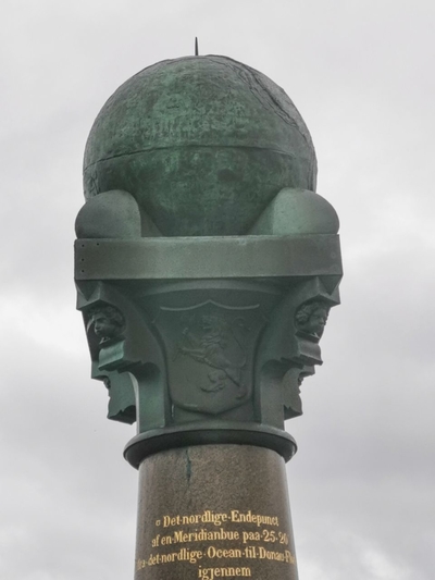 В Хаммерфесте объект ЮНЕСКО представлен монументально! Золотые буквы на розоватом граните напоминают нам сегодня, что именно здесь, в Хаммерфесте, на широте 70°40'11,3" находится северная оконечность гигантской дуги. Имена геодезистов не названы. Сказано лишь, что работы производились «по повелению и под покровительством императоров Александра I, Николая I и короля Оскара I» и что «геометры трех наций трудились с 1816 по 1852 год».
