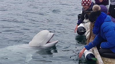 Визитная карточка Хаммерфеста с недавнего времени кит-белуха по имени Hvaldimir. Почти русское имя, как у действующего президента России, кит получил за то, что однажды приплыл за каким-то норвежским кораблём из Баренцева моря. На ките были ремнями закреплены какие-то приборы и камеры. Местные посчитали, что это русский кит-шпион. Но потом полюбили. Кита я, к сожалению, не увидел, поскольку пришёл к причалу не вовремя, его кормят по расписанию, которого я не знал заранее. Кит несомненный любимчик местных жителей и туристов, наслаждается жизнью и обедом по расписанию, но не наглеет и приносит пользу. Недавно от охватившего волнения от общения с китом один каякер уронил в море камеру. Кит нырнул за камерой ко дну, а потом вернул хозяину. Камера при этом записала всё происходящее!