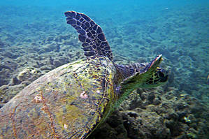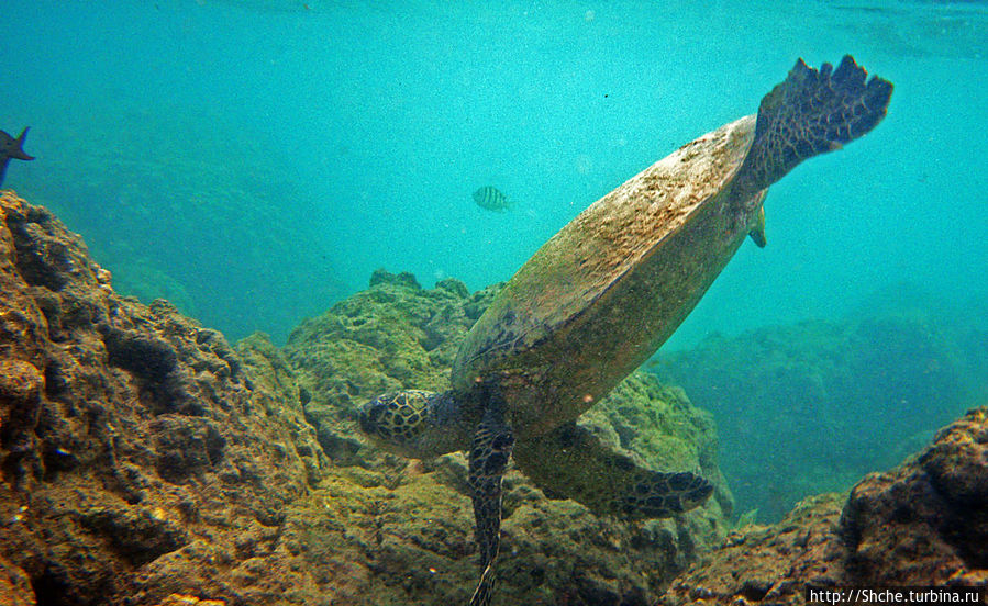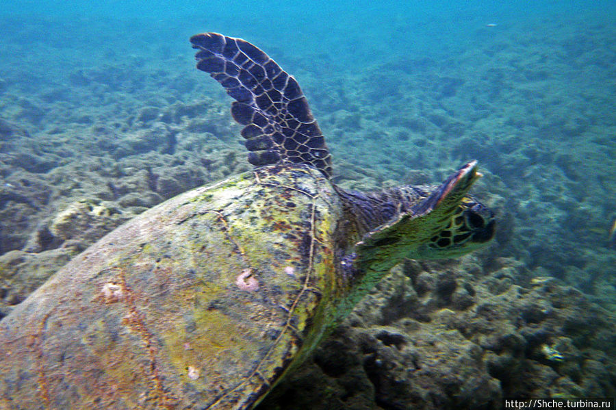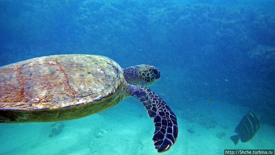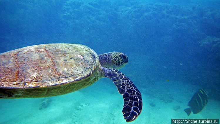 А черепаха не будь дурой быстро погребла в сторону рифа