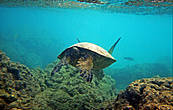 Ханаума-Бей — лучшее место для снурклинга на осторве Оаху, а, как по мне, так и вообще на Гавайских островах. Хотя американцы на картах отмечают десятки "лучших в мире мест для снурклинга, где можно покупаться с черепахами", на то они и американцы, мне выпала такая возможность лишь раз. И по иронии судьбы, в первое же купание, на первом же пляже, да еще и в первые десять минут. Было чувство, ну вот, уж за две недели то... у-ух! Ан нет, скажу сразу, больше с черепахами я не плавал. Видел на берегу и в воде, но не плавал...