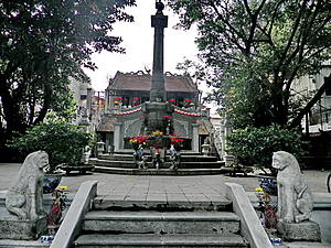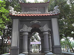 На западном берегу озера Хоанкьем есть небольшой скверик. Он почти незаметен с дороги.