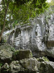 И снова мы попадаем в парк, но парк полный пещер, гротов, субтропической растительности, высоких деревьев, перетянутых лианами. Мы побродили по пещерам с высеченными в них изваяниями Будд. Низкие потолки, полумрак. Большое количество туристов и неприятно орущие в мегафоны китайские гиды не давали насладиться в тишине и покое великолепием… Там же находилась фигурка “денежного Будды”, приносящего счастье и богатство. Мы встали в очередь погладить его по голове, чтобы выполнить определенный туристический ритуал. Далее достаточно высоко высечен улыбающийся монах. Затем пещера, в которой якобы есть небольшое отверстие в потолке, и тот, кто его увидит, будет счастлив. Все туристы, задрав голову, кружились в одиноком танце в погоне за счастьем.