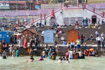 Один из семи священных городов Индии, Харидвар для верующих индусов служит воротами в обитель богов, ведь в переводе "Хари" это Бог, а "двар" — ворота. Поскольку город священный, здесь только вегетарианская еда и безалкогольные напитки. В Харидваре нет величественных храмов, крепостей или дворцов. Основная достопримечательность – окунание в быстрой и прохладной реке Ганга. Река называется именно Ганга, а не Ганг, как нас почему-то учили в школе. Харидвар — это первый город, где Ганга покидает Гималаи и начинает свой путь по северной Индии к Бенгальскому заливу. Именно поэтому вода здесь довольно прохладная и относительно чистая. Харидвар — один из самых известных центров паломничества в Индии. Верующие индусы со всего мира стекаются сюда, чтобы окунуться в воды Ганги. Индусы верят, что окунание в реке очистит их самих и их предков от грехов. Говорят, что окунувшись в реке Ганга во время праздника Кумбха Мела, накануне которого я посетила Харидвар, верующий индус достигнет мокши, то есть освобождение от вечного цикла рождений и смерти, страданий материального мира. К слову, течение в этом месте достаточно сильное, а так как многие индусы попросту не умеют плавать, то окунаются они, держась за специальные цепи. Несмотря на то, что к купанию приобщились многие соотечественники, я окунуться в священные воды Ганги с головой все же не решилась. Ограничилась лишь омовением ног. Так и уехала из священного города Харидвар со всеми привезенными с собой грехами... Зато опустила в Гангу корзинку с цветами, чтобы исполнилось желание.