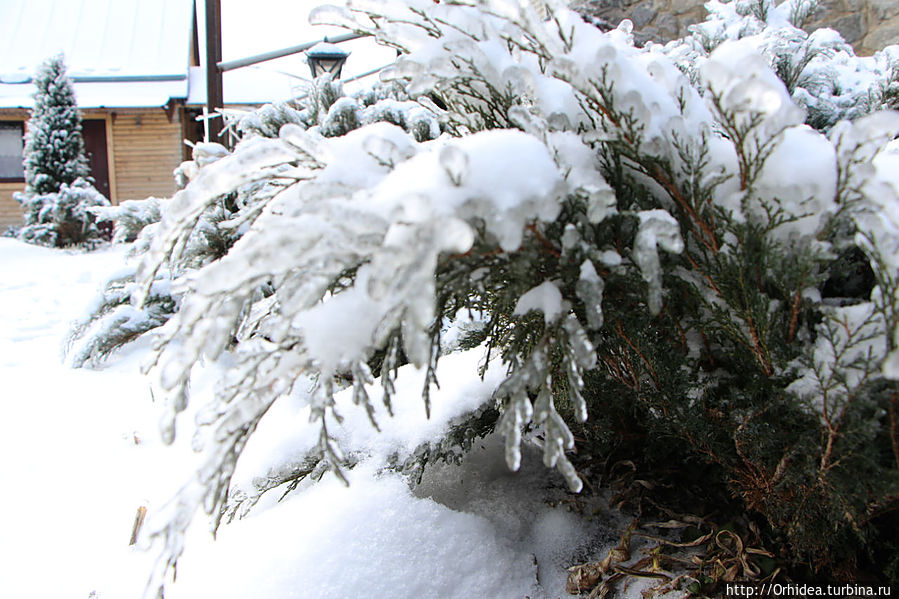 Второй зимний дождь был уже понастойчивее. Он реально парализовал транспорт и доставил множество проблем. Но на следующий день выпал небольшой снег, и картинка заиграла новыми красками. Снег выпал ночью, утром прояснилось и руки сами потянулись к фотоаппарату. Вот такой он, зимний украинский "Сваровски" с нежной присыпкой белейшей пудры.