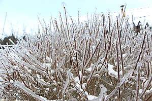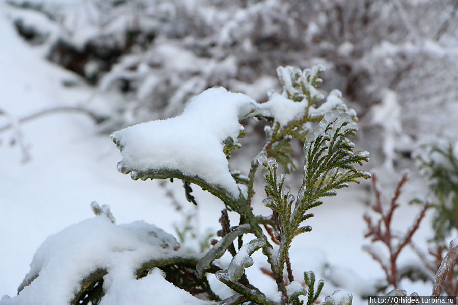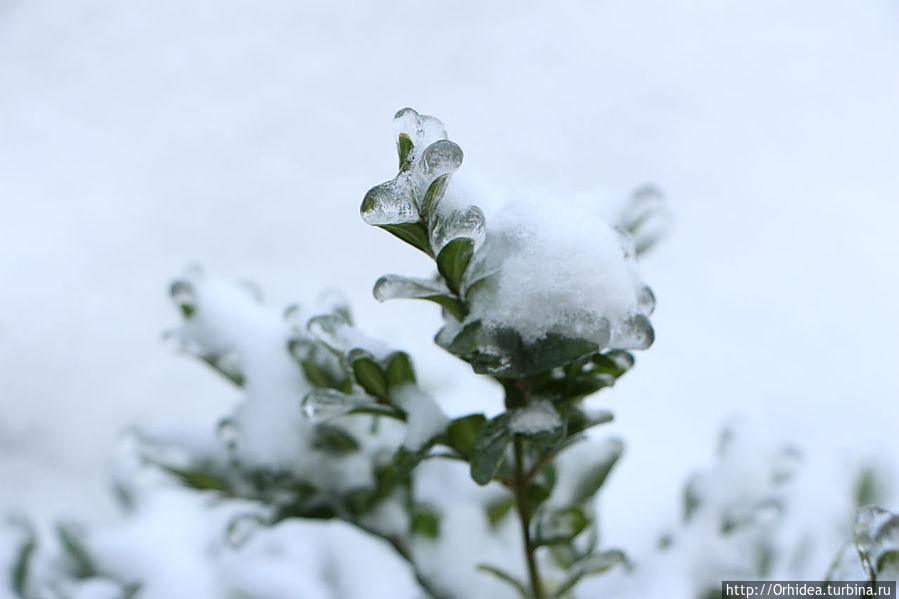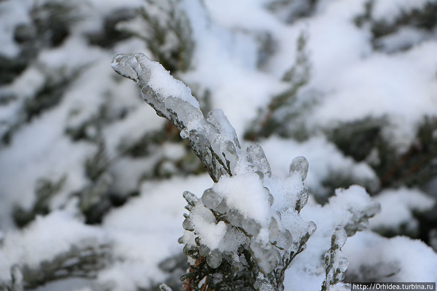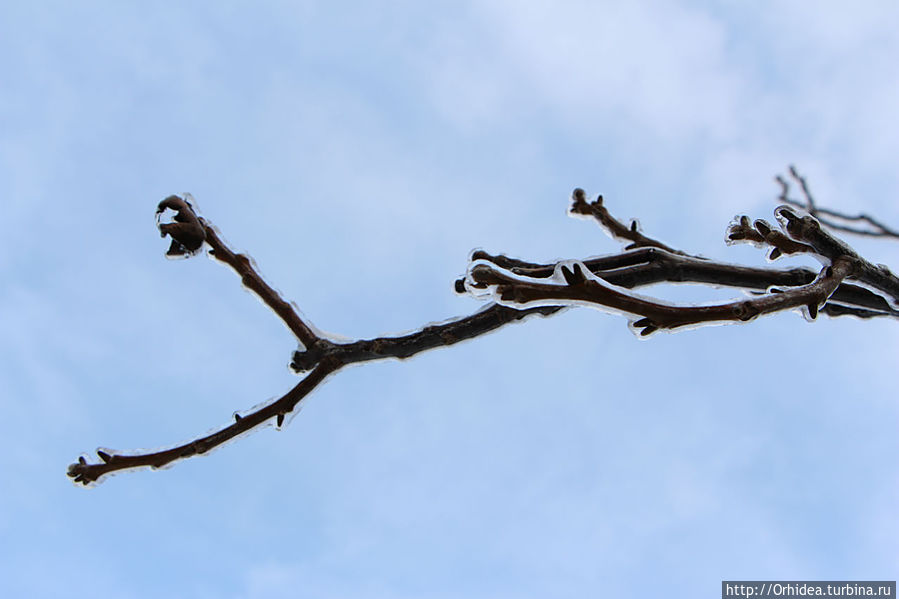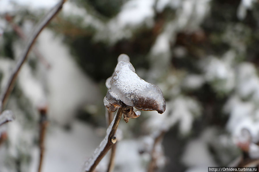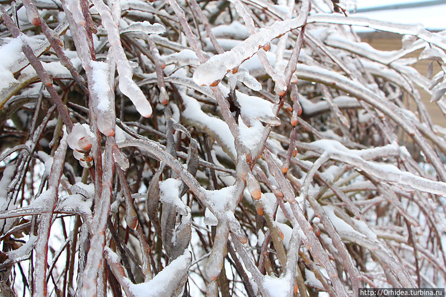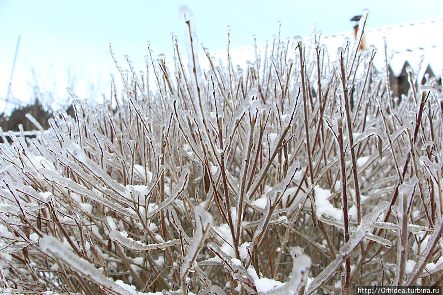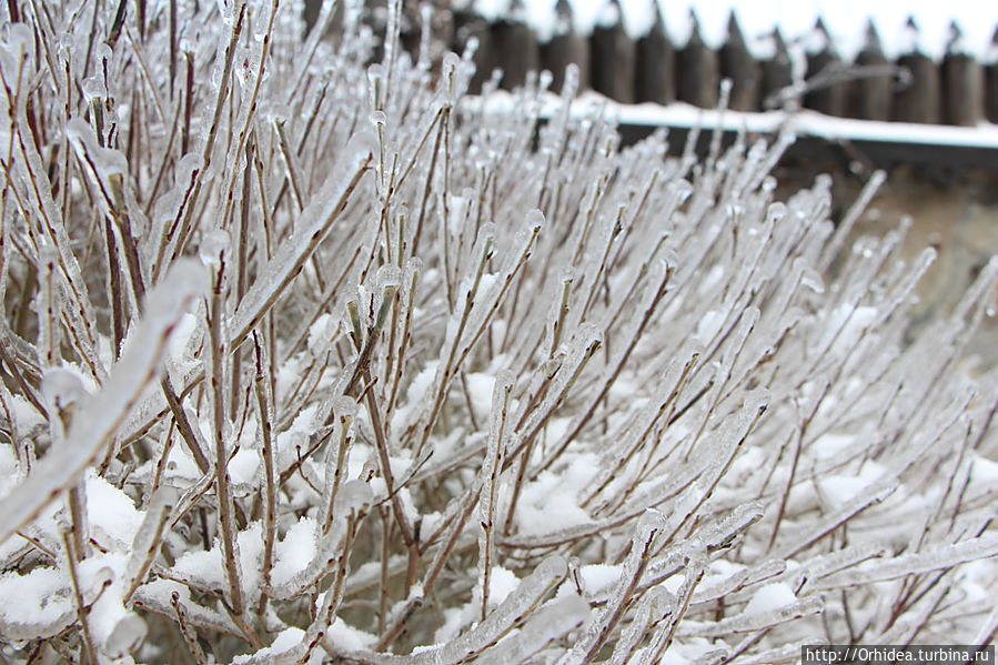Этой зимою природа дважды подарила нам явление дождя при небольшом морозе. Обычно это сопровождается гололедом, травмоопасностью, параличем наземного транспорта и красивейшими зарисовками с участием растений и льда.