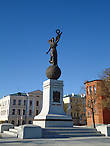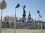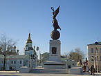 Давно любуюсь Харьковом, но здесь он особенно хорош: и старина и день сегодняшний гармоничны. Радуют глаз. И памятник не только сам симпатичный, но и "вписан" в окружение — на фоне куполов женская фигура с крыльями. Очень удачно!