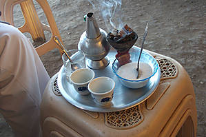 После обеда в Судане традиционно пьют кофе, который разливают в крошечные чашки, наливая его из небольшого кофейника Джебена. В Судане в кофе часто добавляют и имбирный порошок, и многие другие пряности. Часто туристы не зная сего, говорят, что суданский кофе отдает имбирем, но в чистом виде ему данный привкус совершенно не присущ. Иногда вам готовят кофе с кардамоном, иногда могут добавить гвоздику. Если попросите, то добавят и молока.