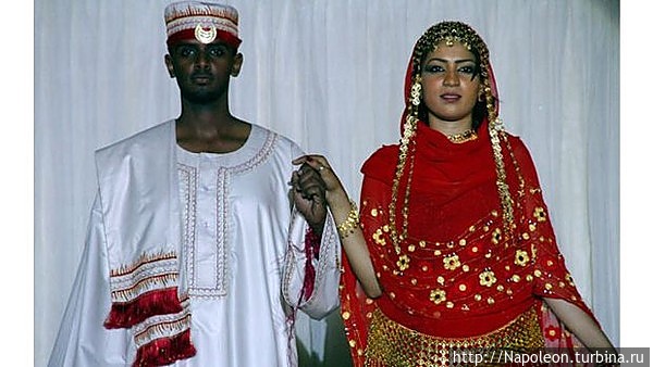 За несколько дней до свадьбы девушка обязательно сходит вместе с подружками в сауну при гостинице (в Судане нет общественных бань). В день свадьбы с самого утра невеста идет в парикмахерскую вместе с подругами. Им всем делают маникюр, педикюр, макияж и прически. Если прическа девушке не понравится, ей заново вымоют голову, смывают косметику с лица и сооружают новую укладку и новый макияж. Все невесты пользуются своим правом капризничать, им переделывают прическу два-три раза. Здесь же, в парикмахерской, девушке надевают белое платье, и она ждет жениха. Само собой разумеется, сауну и парикмахерскую невесты и её подружек оплачивает жених.