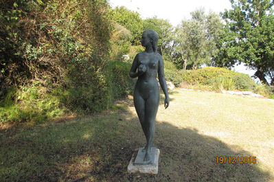 У меня был с собой фотоаппарат, да и погода сегодня выдалась солнечная — замечательная для декабря, поэтому я с удовольствием прогулялась по парку и сфотографировала почти все скульптуры (а их, как я прочла потом, около 30) и замечательные виды, открывающиеся на Хайфу со склона горы Кармель.