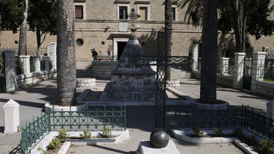 Перед входом в церковь установлен памятник-пирамида с крестом на вершине. Этот памятник установлен на братской могиле наполеоновских солдат, убитых турками.