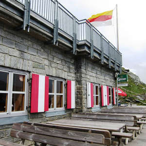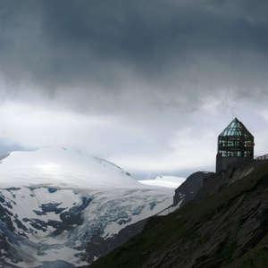 Теоретически, там есть выставка фотографий, но зачем смотреть на фото то, что можно посмотреть наяву? И всего только надо подняться на самый верх и пройтись по кругу. Сквозь стеклянные стены прекрасный вид на ледник Пастерце и на саму гору Гросглокнер.