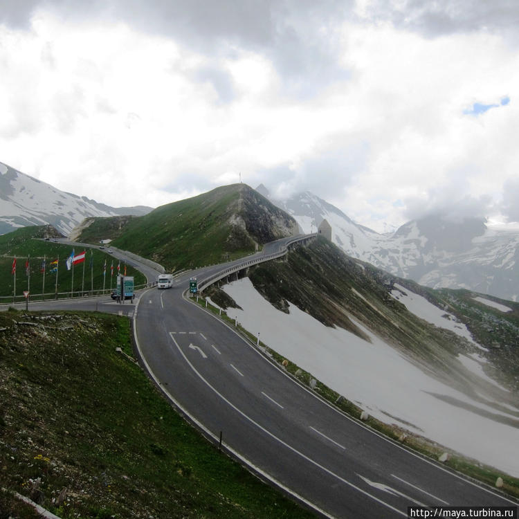 У горы Гро́сглокнер две вершины, большая и маленькая. Так они и называются: Гросглокнер и Клайнглоккнер. Мы проехали на обе, поочередно.