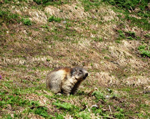 На обратном пути мы углядели такую табличку. Глянули вниз, а табличка-то не врет. Сурки бегают прямо под табличкой. Всю обратную дорогу мы всматривались очень внимательно. Сурков было действительно много.