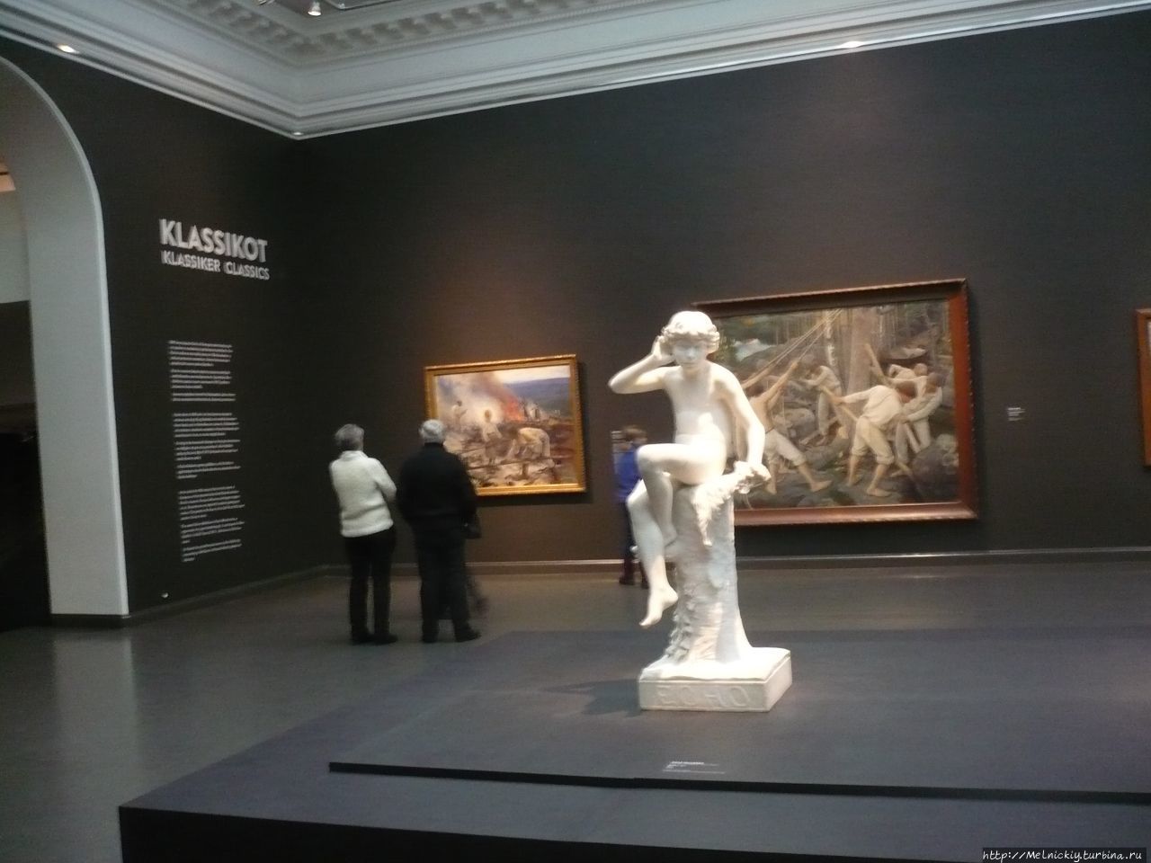 В 2014 году музей реорганизован в Национальную галерею Финляндии. Экспозиция музея отражает этапы развития финского искусства с середины XVIII века до середины ХХ века. Здесь представлены работы Аксели Галлен-Каллела, Альберта Эдельфельта и Хуго Симберга. Зарубежные мастера представлены Ван Гогом, Гогеном, Сезанном, Леже, Мунком и Шагалом. Русская культура представлена Ильей Репиным, Василием Поленовым, Иваном Шишкиным.