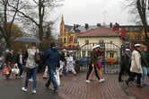 В этот день Хельсинки приобретает особый колорит и задор, каких мы не ощущали во время предыдущих поездок. Толпы «белофуражечников» заполняют улицы и площади города. Причем белые фуражки на головах не только у тусующихся, но и у людей занятых обыденными делами – беготней по магазинам, выгулом собак, сидением на лавочках и т.д. Участвуют студенты разных поколений. Мне даже сложно сказать — было ли больше молодежи или людей солидного возраста. Но невзирая на возраст и несмотря на не очень весеннюю погоду (временами принимался холодный дождь), повсюду царила атмосфера именно студенческого веселья.