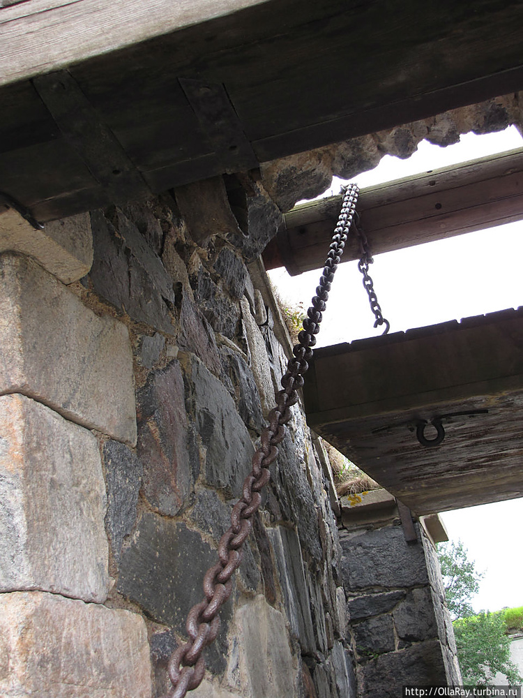 И вышли к Королевским воротам. Это знаковое место крепости. Ворота были построены на месте, где пришвартовался корабль шведского короля Адольфа Густава. А мне очень понравился подъёмный мост к воротам со стороны крепости с настоящей цепью.